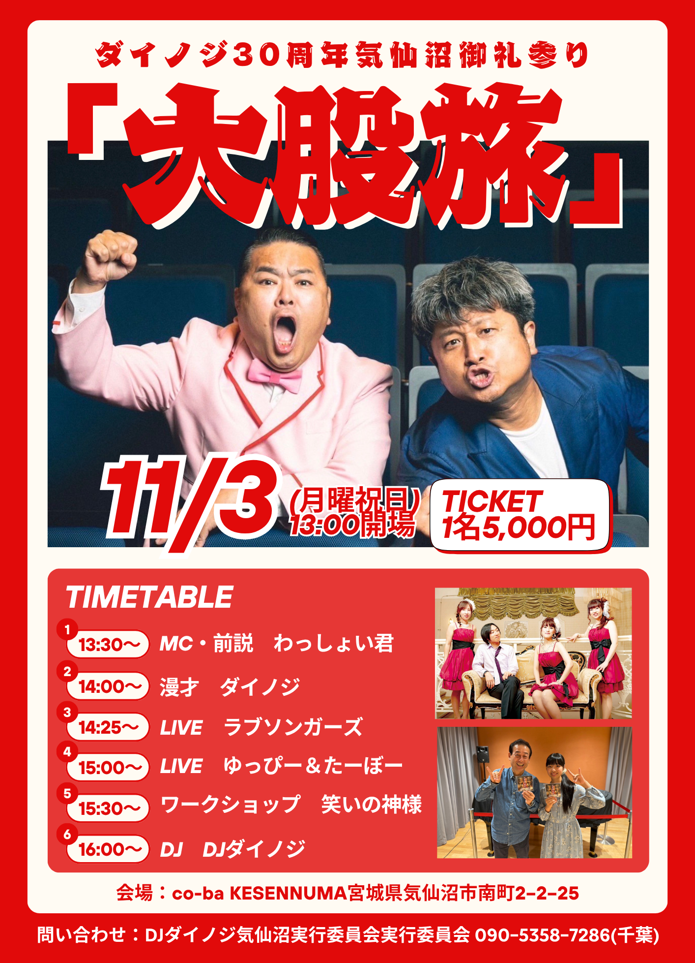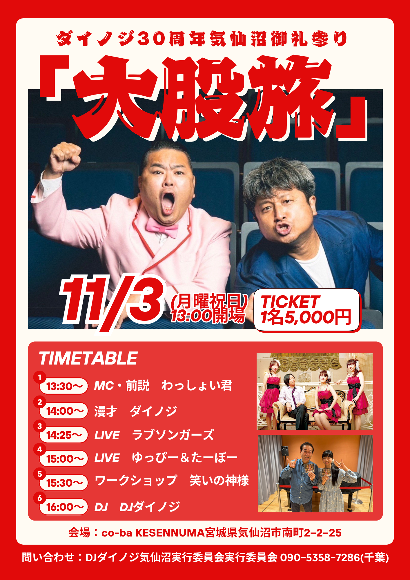 問い合わせ:DJダイノジ気仙沼実行委員会090-5358-7286 (千葉)