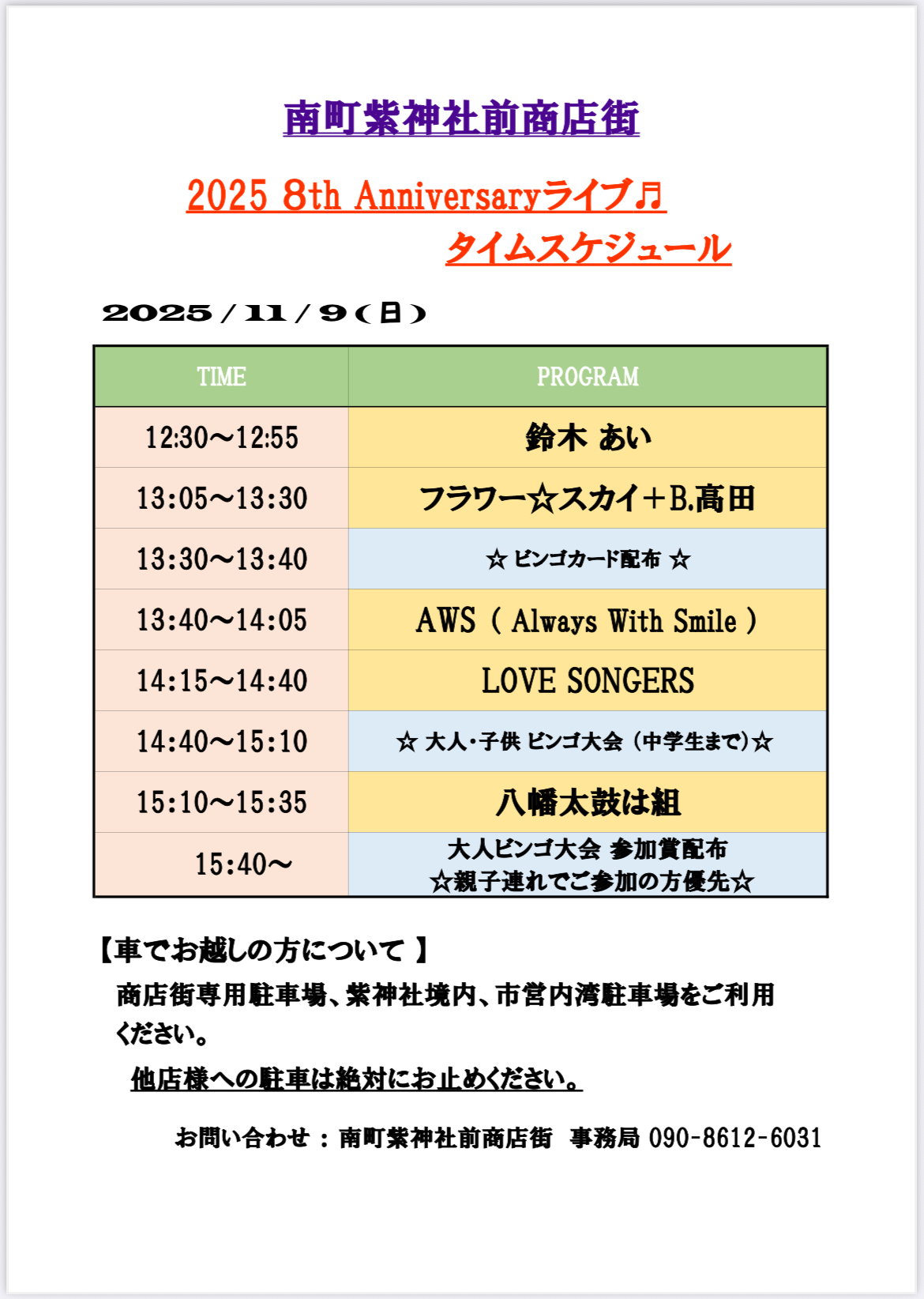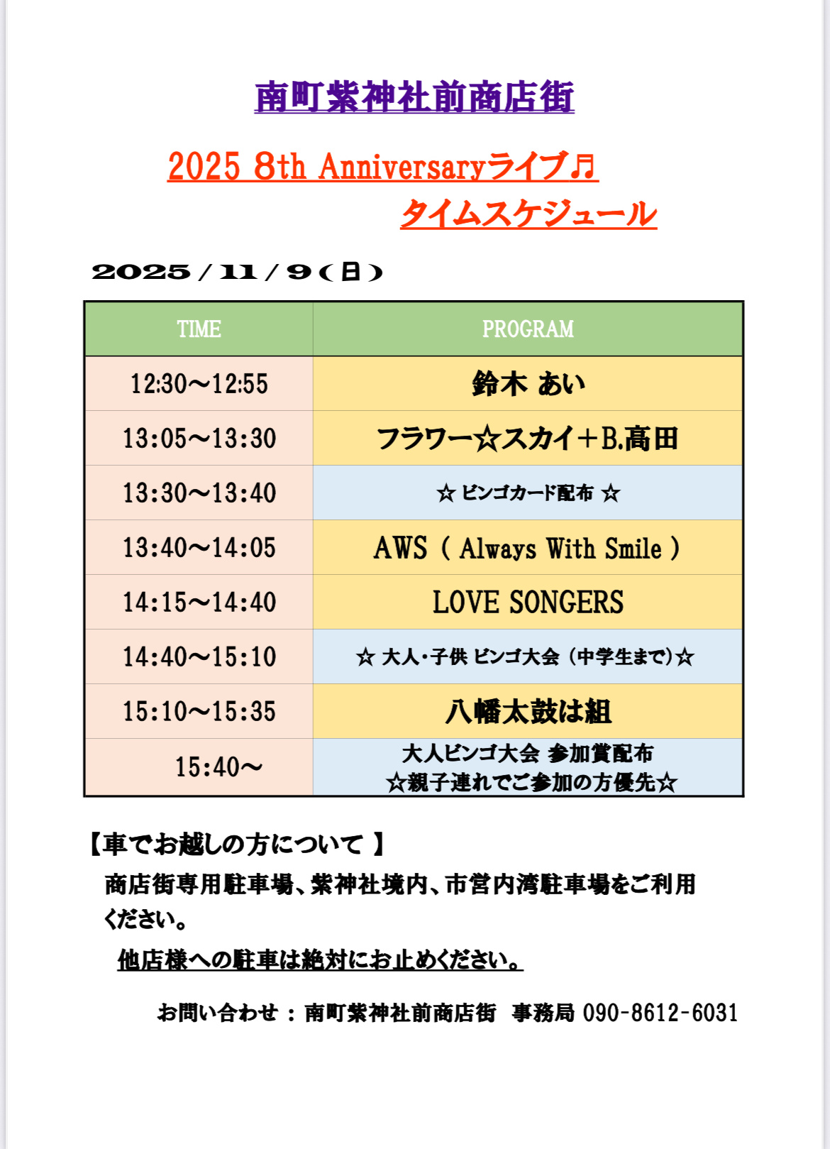 問い合わせ:南町紫神社前商店街 090-8612-6031(事務局)